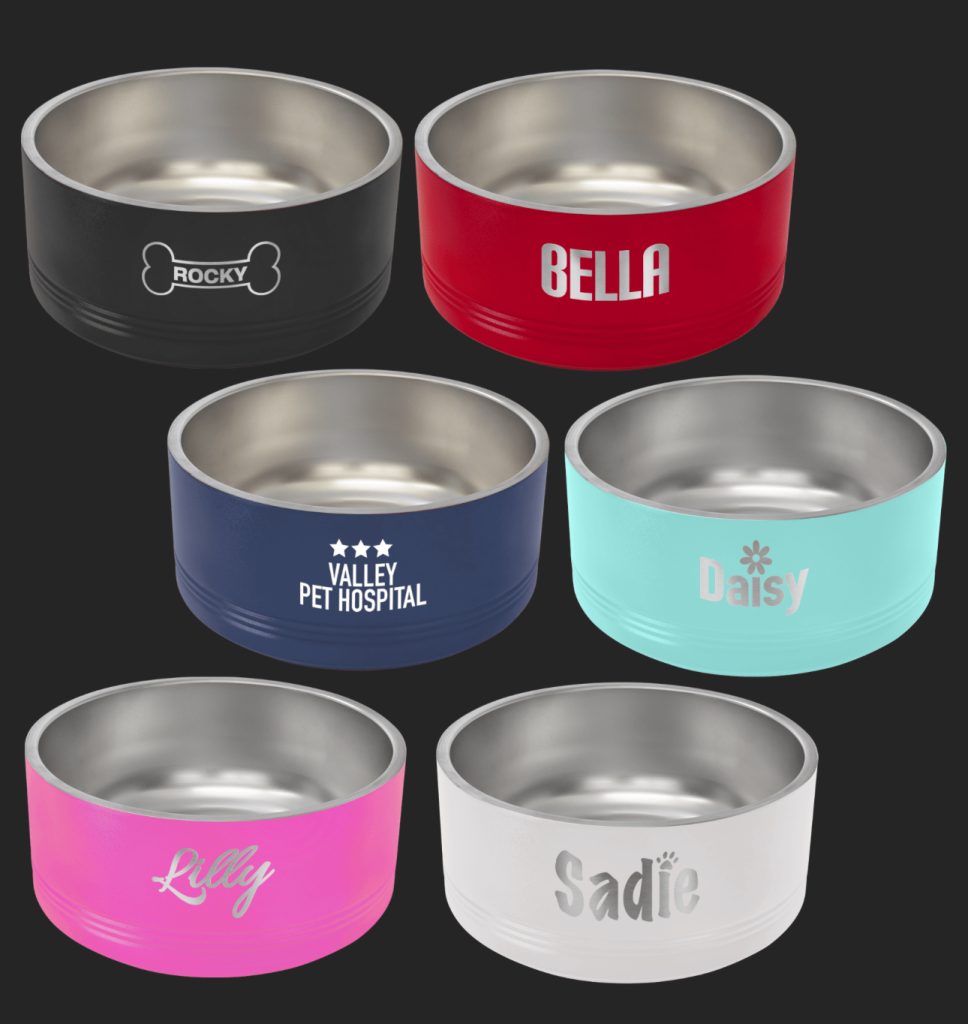 Sturdy and durable Polar Camel pet bowls are available in 3 sizes and in 6 colors. They have a large personalization area and non-slip grips on the bottom to prevent sliding on the floor. Spoil your pets and make them feel extra special with a custom bowl made just for them!